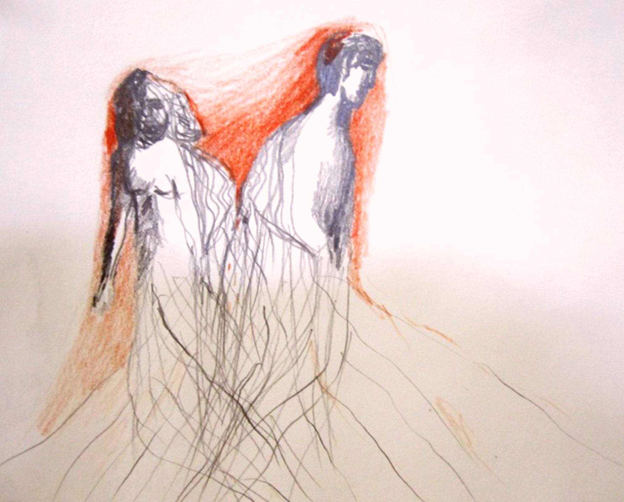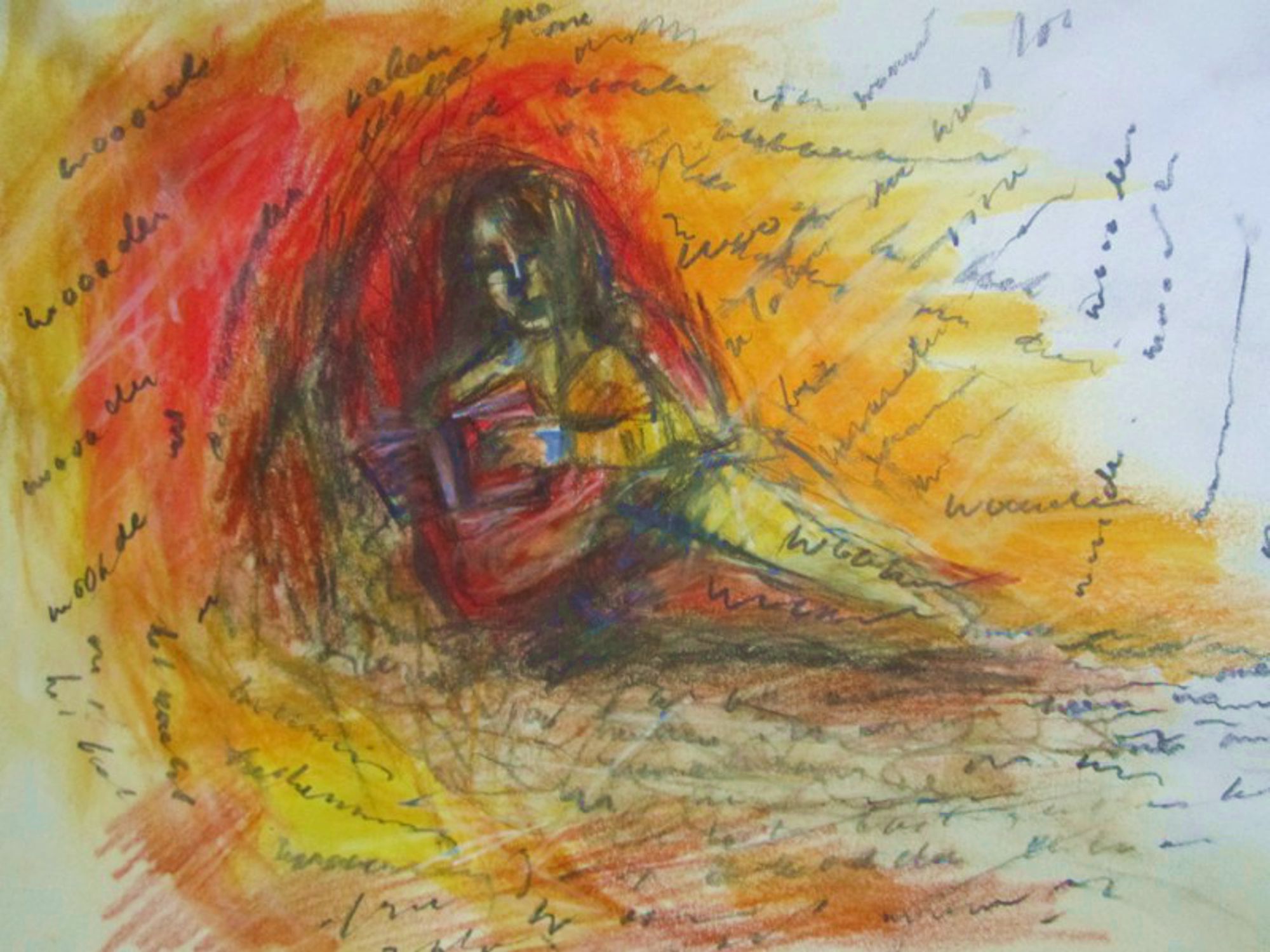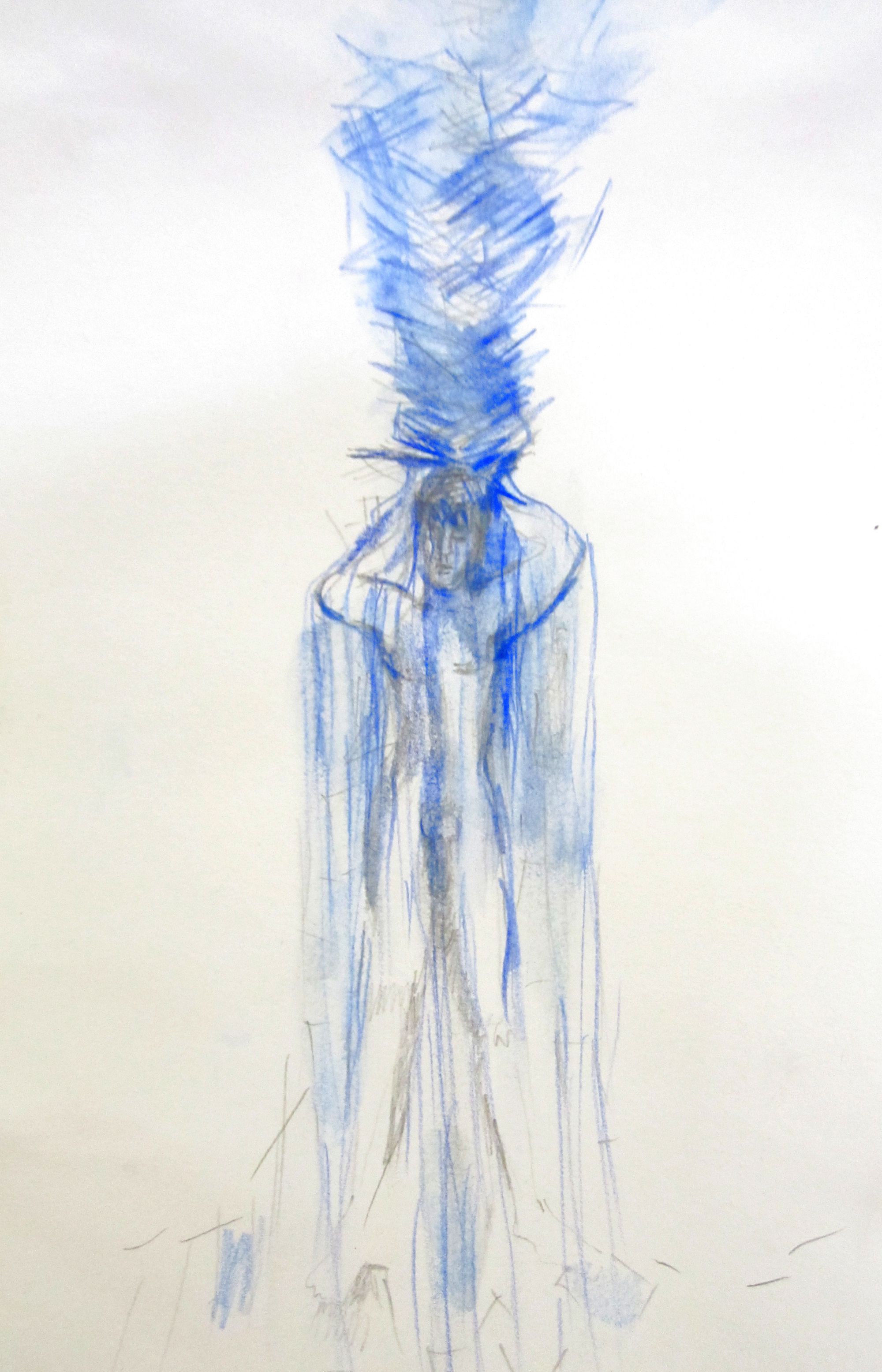 waar ben je, ik mis je-Gemengde techniek op papier.
