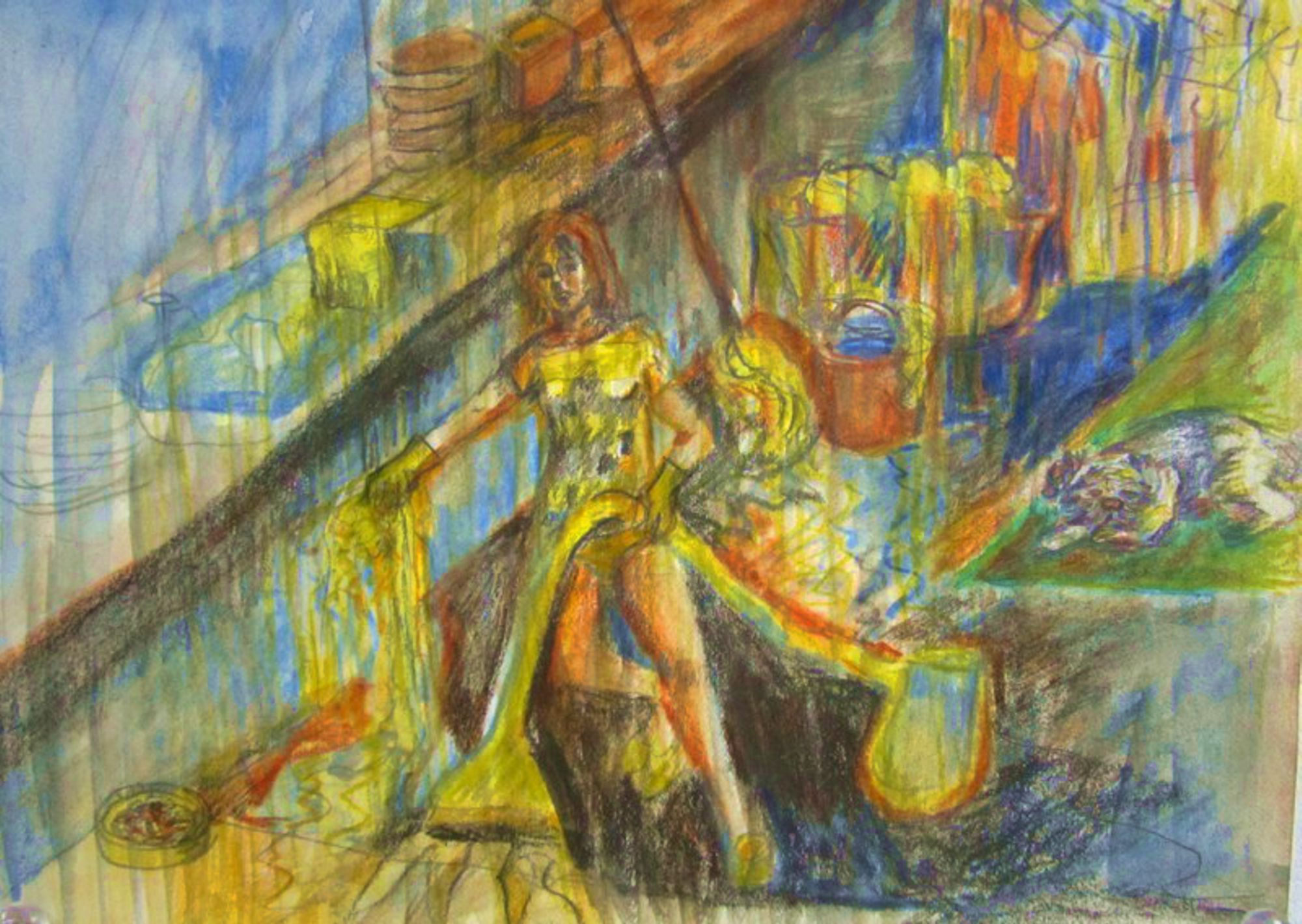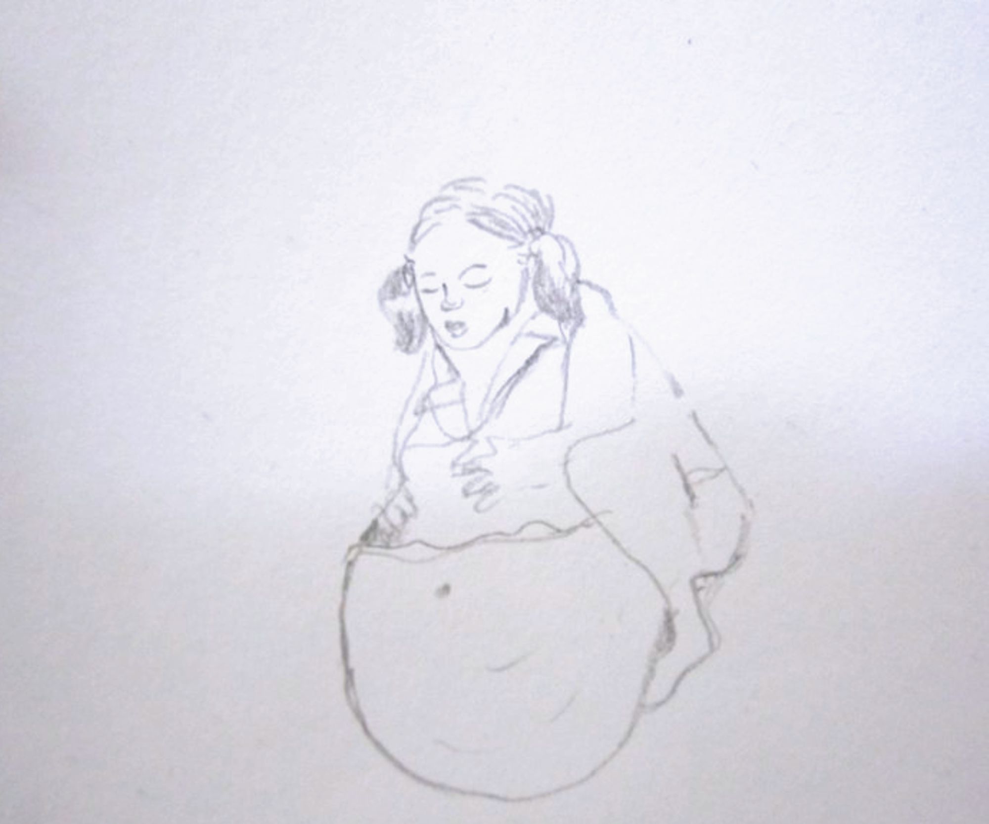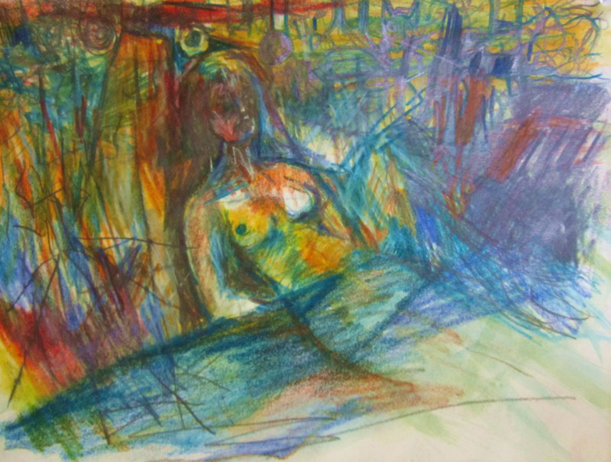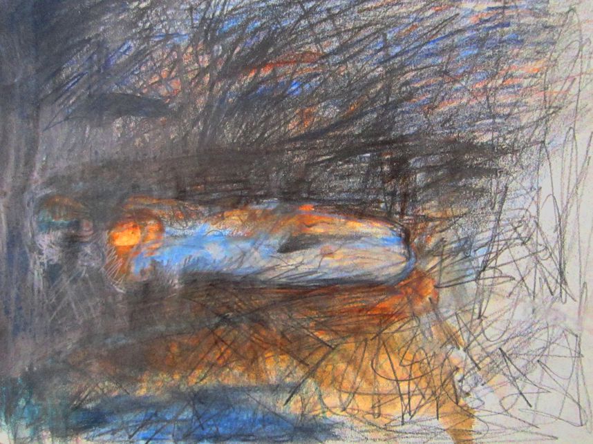 Bad night and heavy dreams-Potlood en pastel op papier Verkocht.